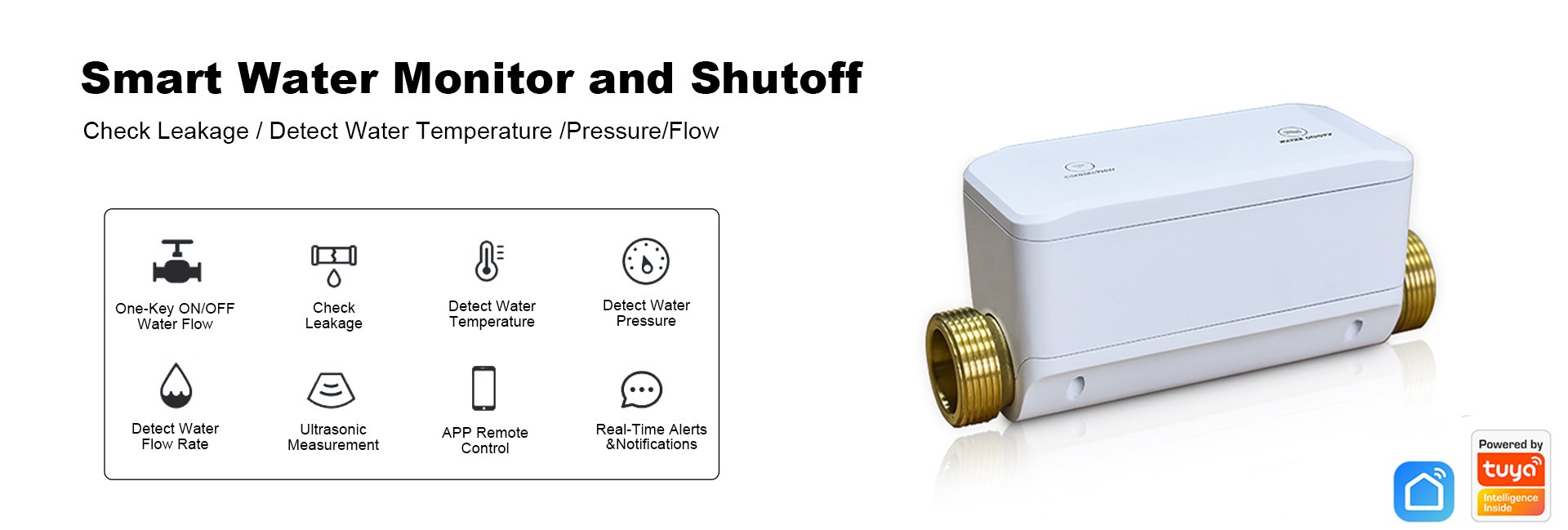 Tuya Smart WiFi Monitor de agua Sensor de apagado automático Mide el uso del agua Temperatura Presión Compatible con Alexa para Home Hotel