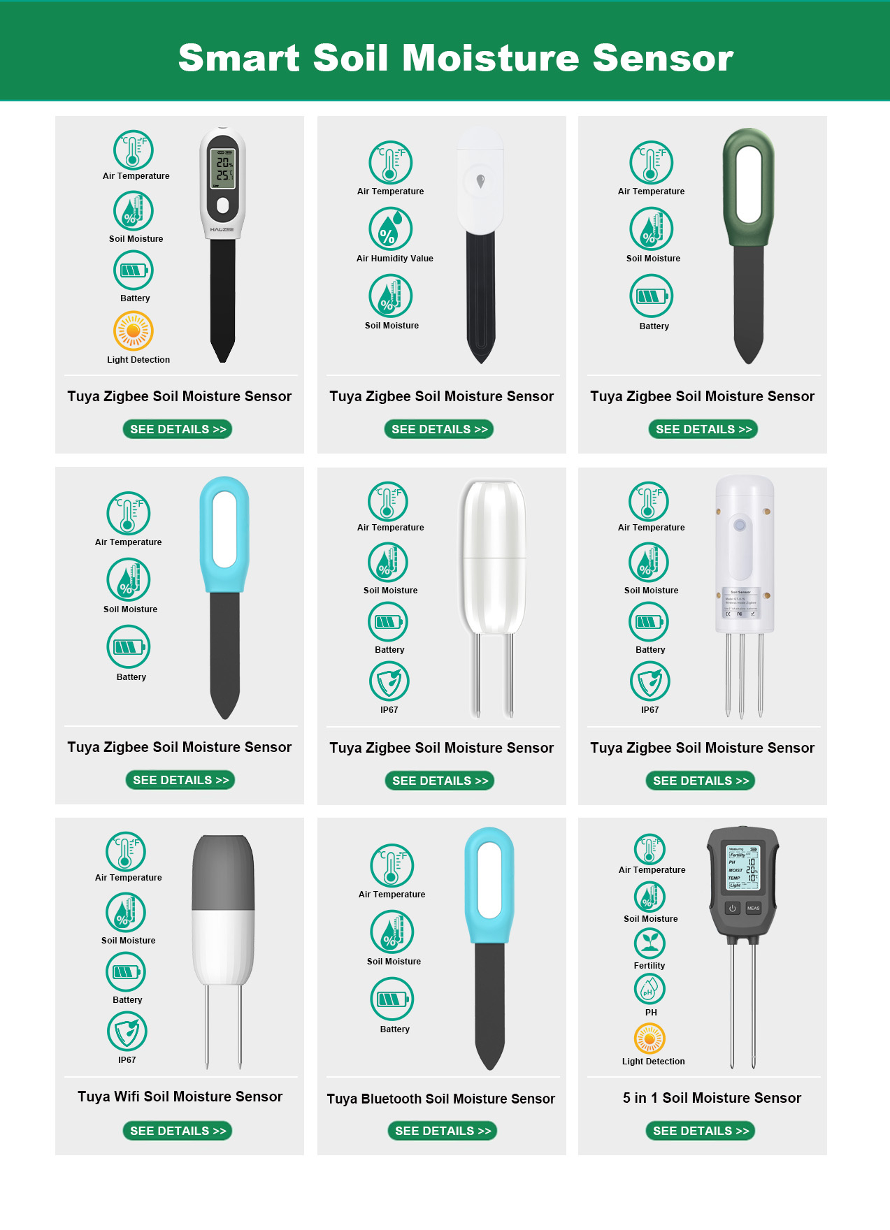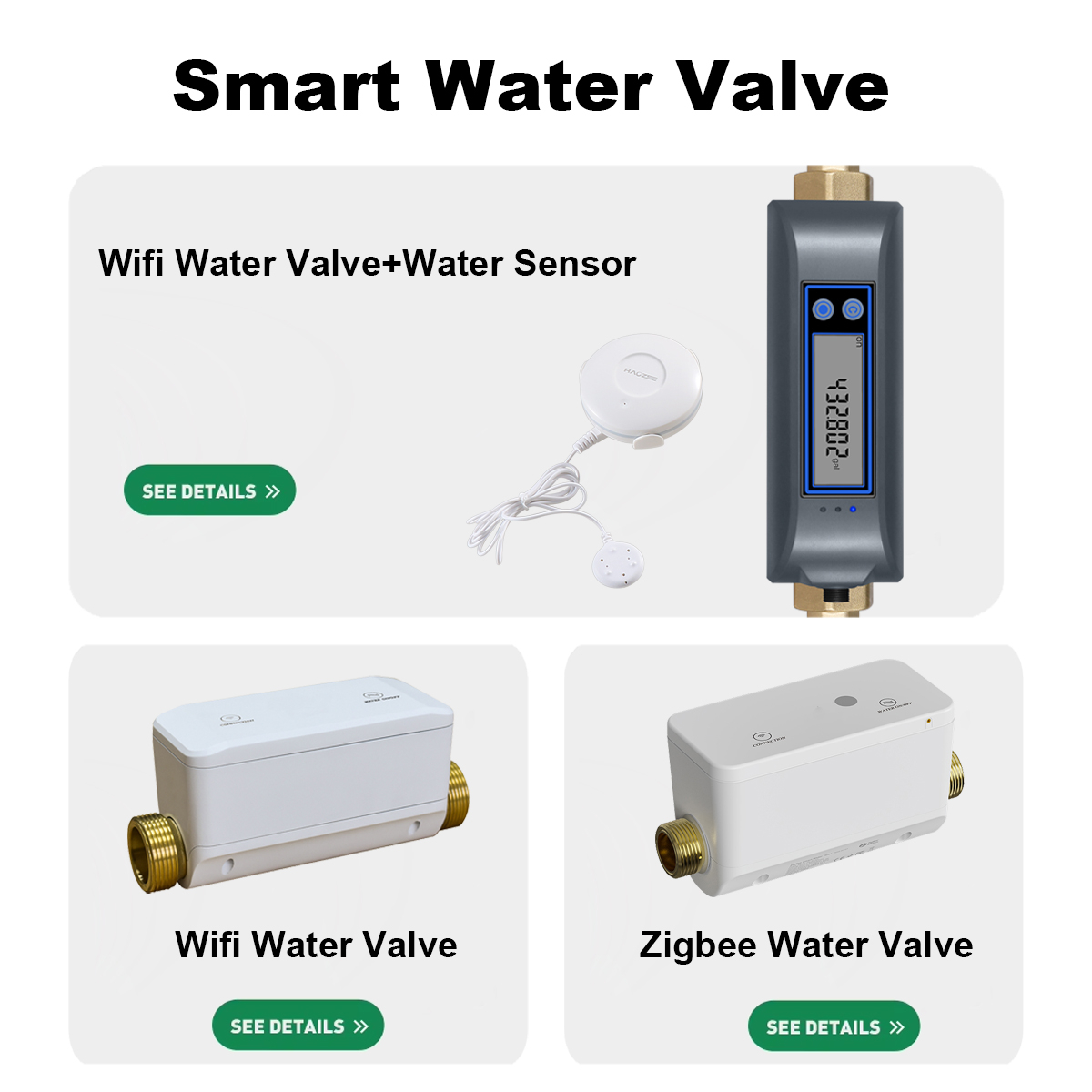 Productos principales:Temporizador de agua, sensor de suelo, sensor de presencia, enchufe de alimentación, alarma de sirena